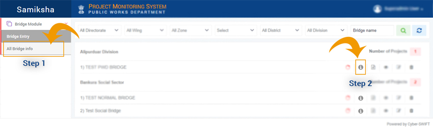 Please add Bridge Inspection through the Bridge Inspection option as shown above.Feel free to contact us on our Support email/Contact No. if you require any further assistance.